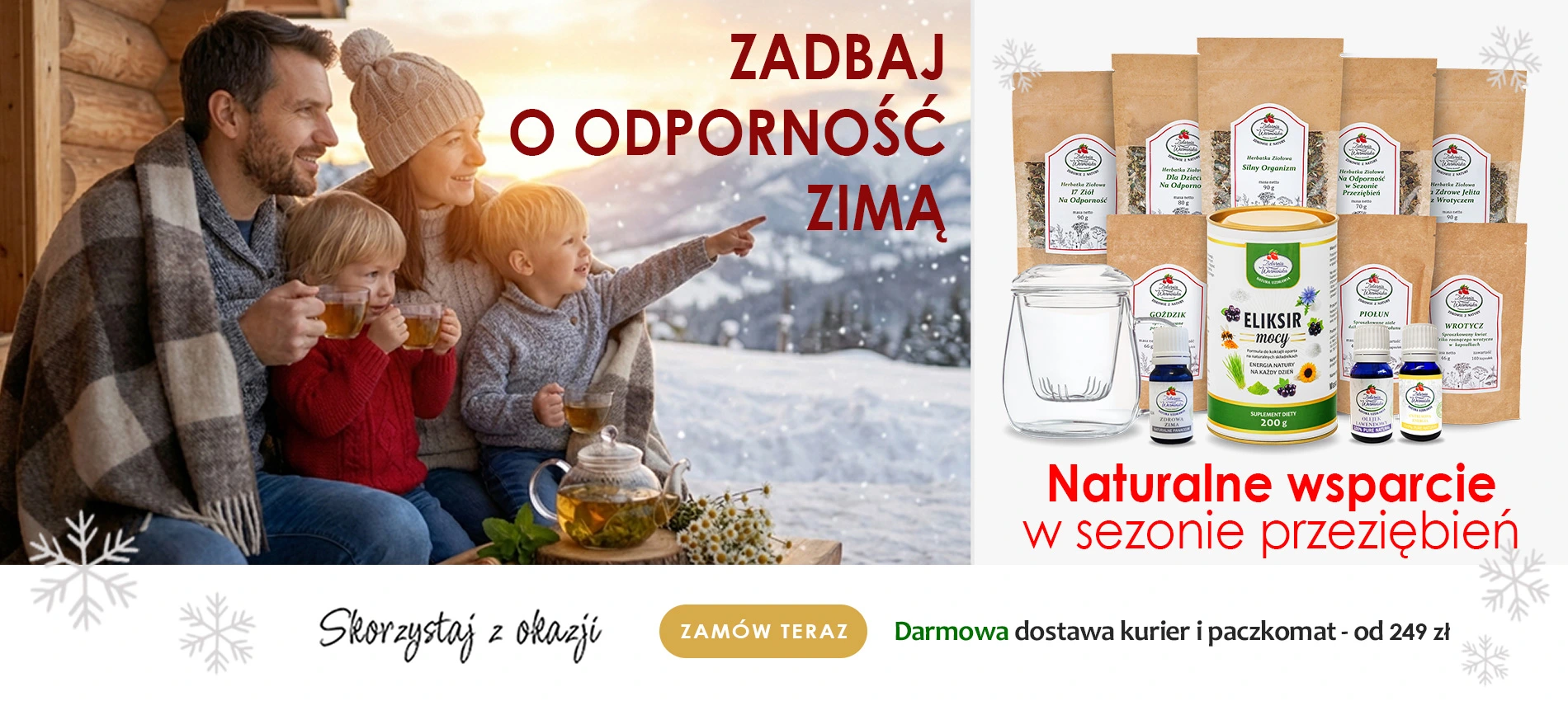 Produkty oferowane w sklepie, w tym zioła, herbaty ziołowe i suplementy diety, mają charakter wspomagający i nie zastępują leczenia prowadzonego zgodnie z powyższą ustawą.