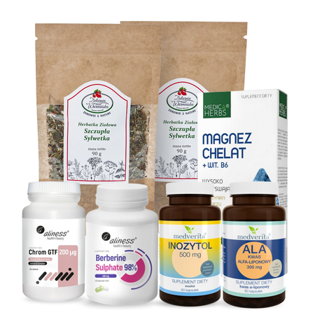Zestaw ,,WSPARCIE METABOLIZMU GLUKOZY'' zawiera 7 produktów: