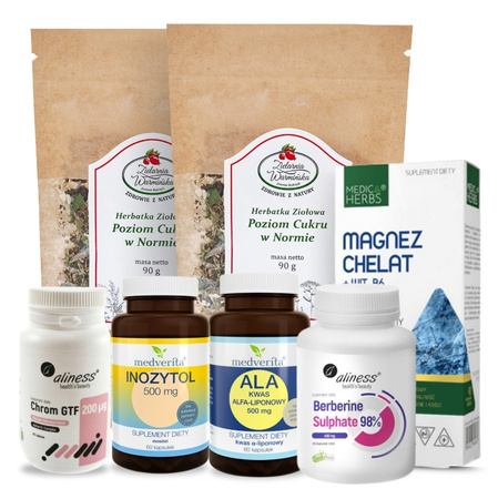 Zestaw ,,WSPARCIE RÓWNOWAGI CUKRU'' zawiera 7 produktów: